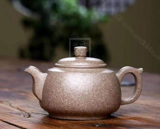 綠泥,玩者暱稱“綠豆砂泥”,古云“豆碧色”,泥色酷似綠豆皮,澹草綠。帶本山綠泥細黃砂,清麗出眾、雅俗共賞。所制壺品質感樸拙,砂質細膩而富有顆粒美感。壺品色澤米黃泛青,泡養后逐步轉為溫潤的亮色,包漿感好而易于泡養,發幽然青光。產于黃龍山礦脈,是紫砂泥中的夾脂,故有“泥中泥”之稱。產量不多,泥質較嫩,耐火力也比紫泥為低。原礦色澤為青灰泛綠,成片巖狀或粉末狀,以手拿之即會沾染上原礦粉末顏色。也常作為胎身外面的粉料或涂料,使紫砂陶器皿的顏色更為多彩。